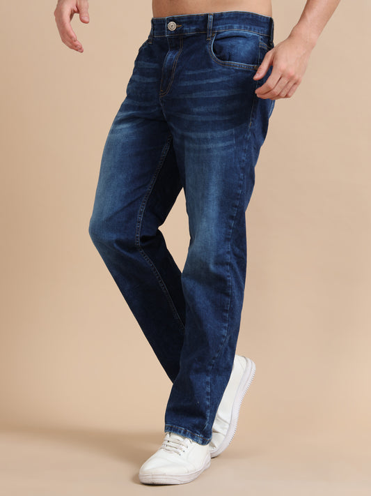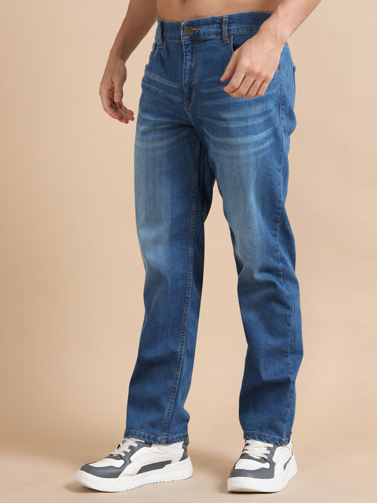 Plus Size Men's Mid-Blue Straight Fit Jeans with Washed Effect