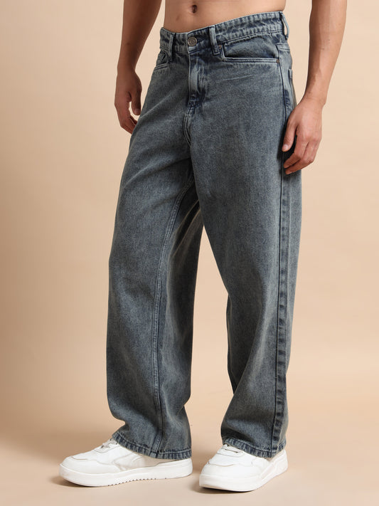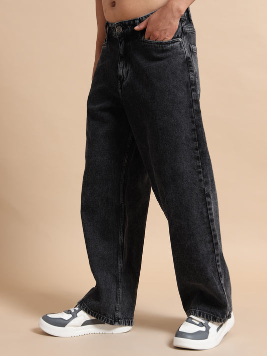 Men's Ash Black Straight Fit Jeans with Washed Effect