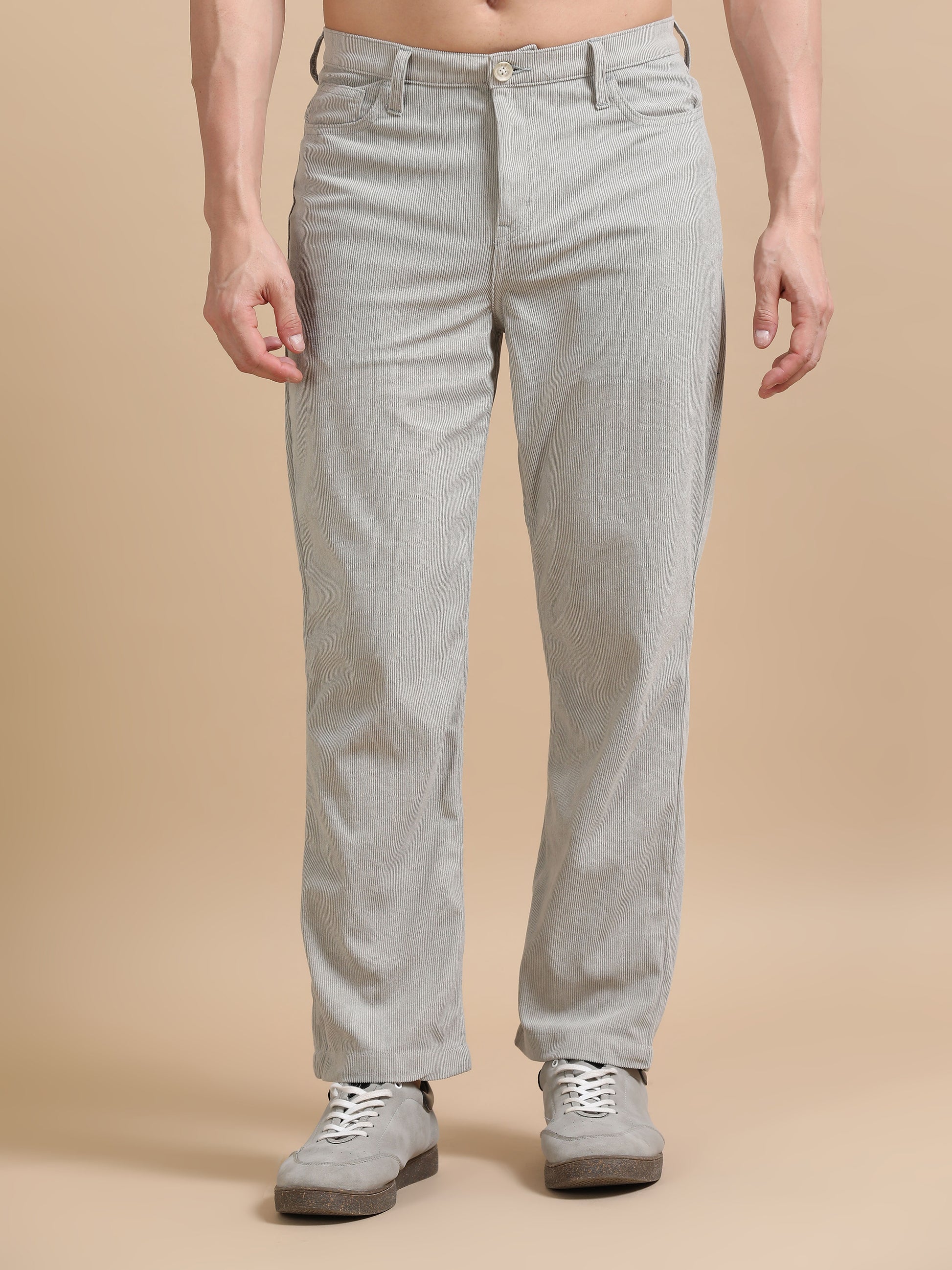 Plus Size Light Grey Corduroy Trousers