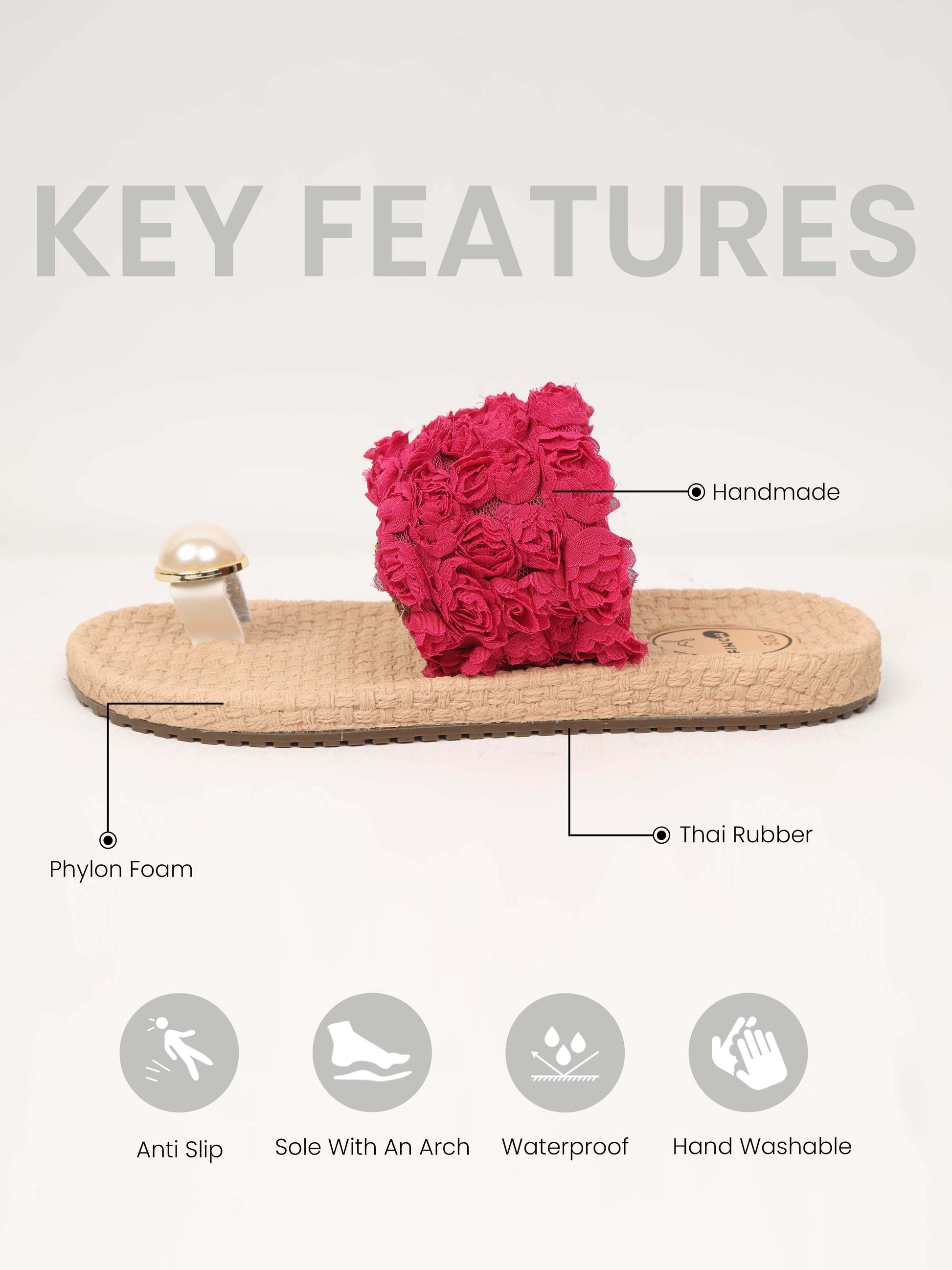 We use high-quality materials such as Bottom Sole - Thai Rubber, Upper Sole - Phylon Foam and other premium fabrics to create comfortable and durable handmade footwear.