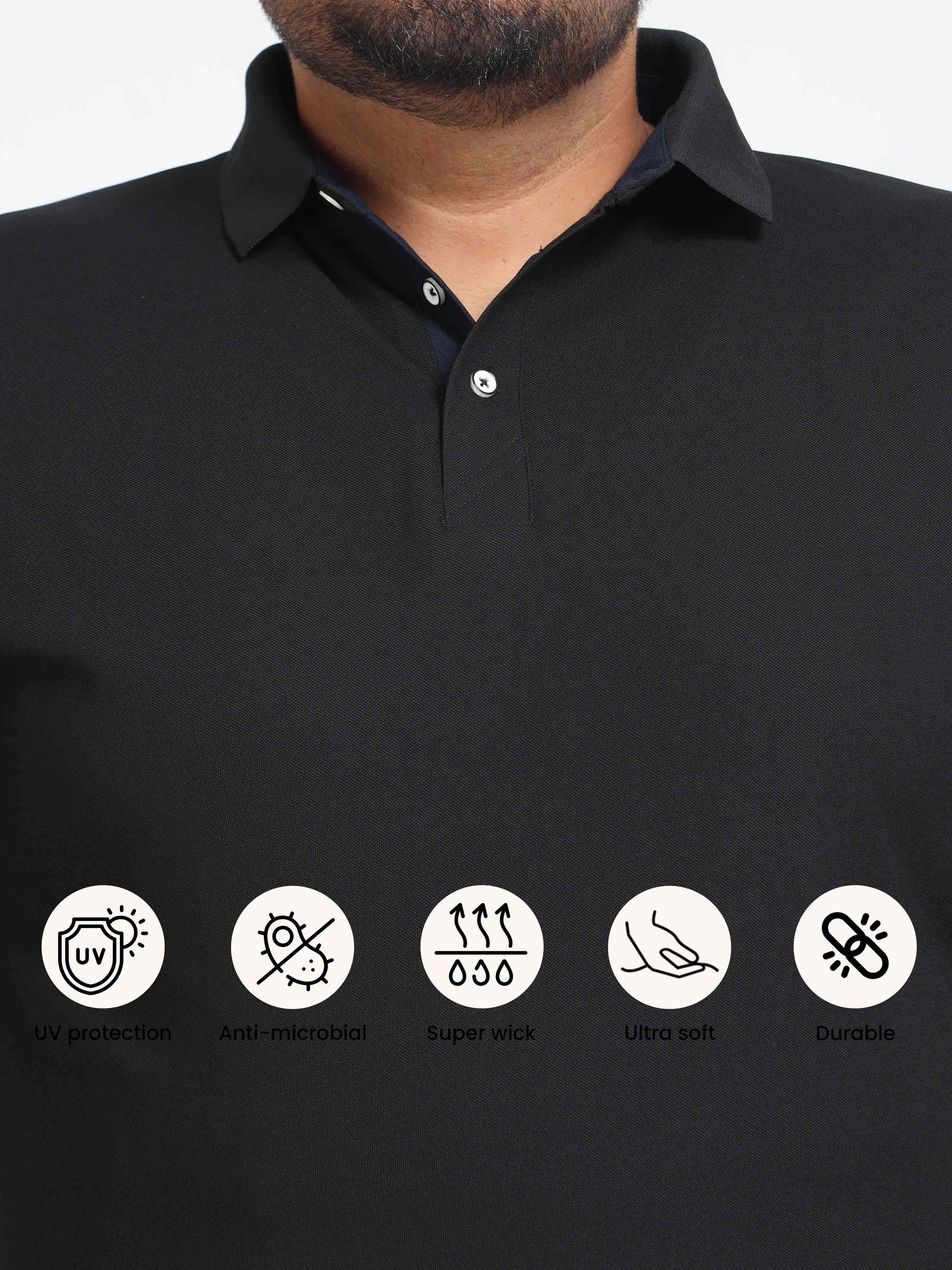 Plus Size Black Men's Polo T-shirt