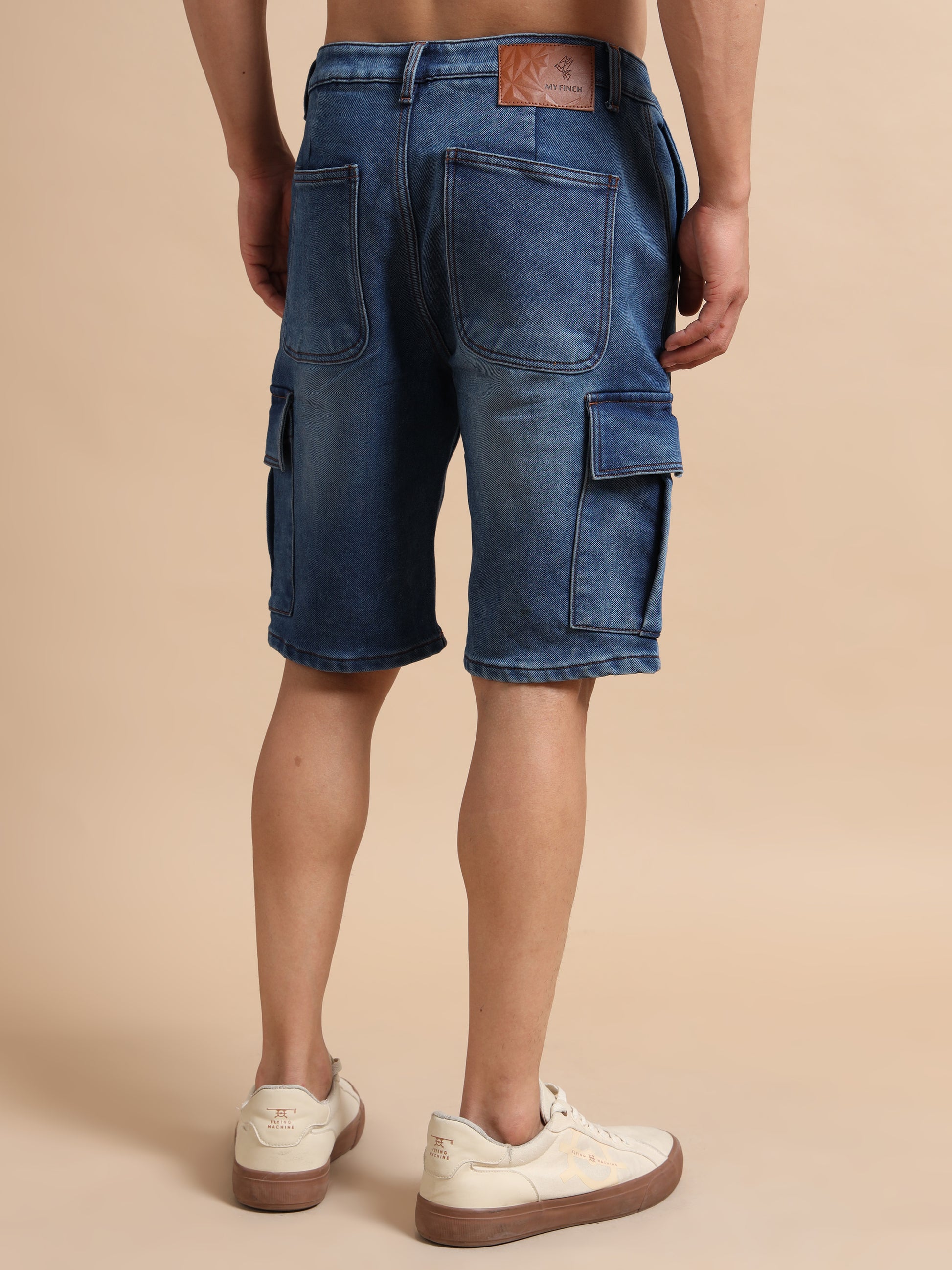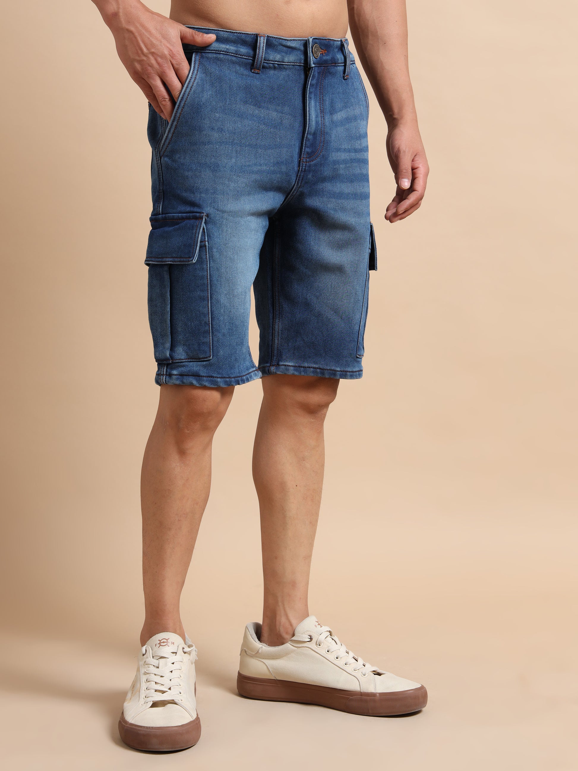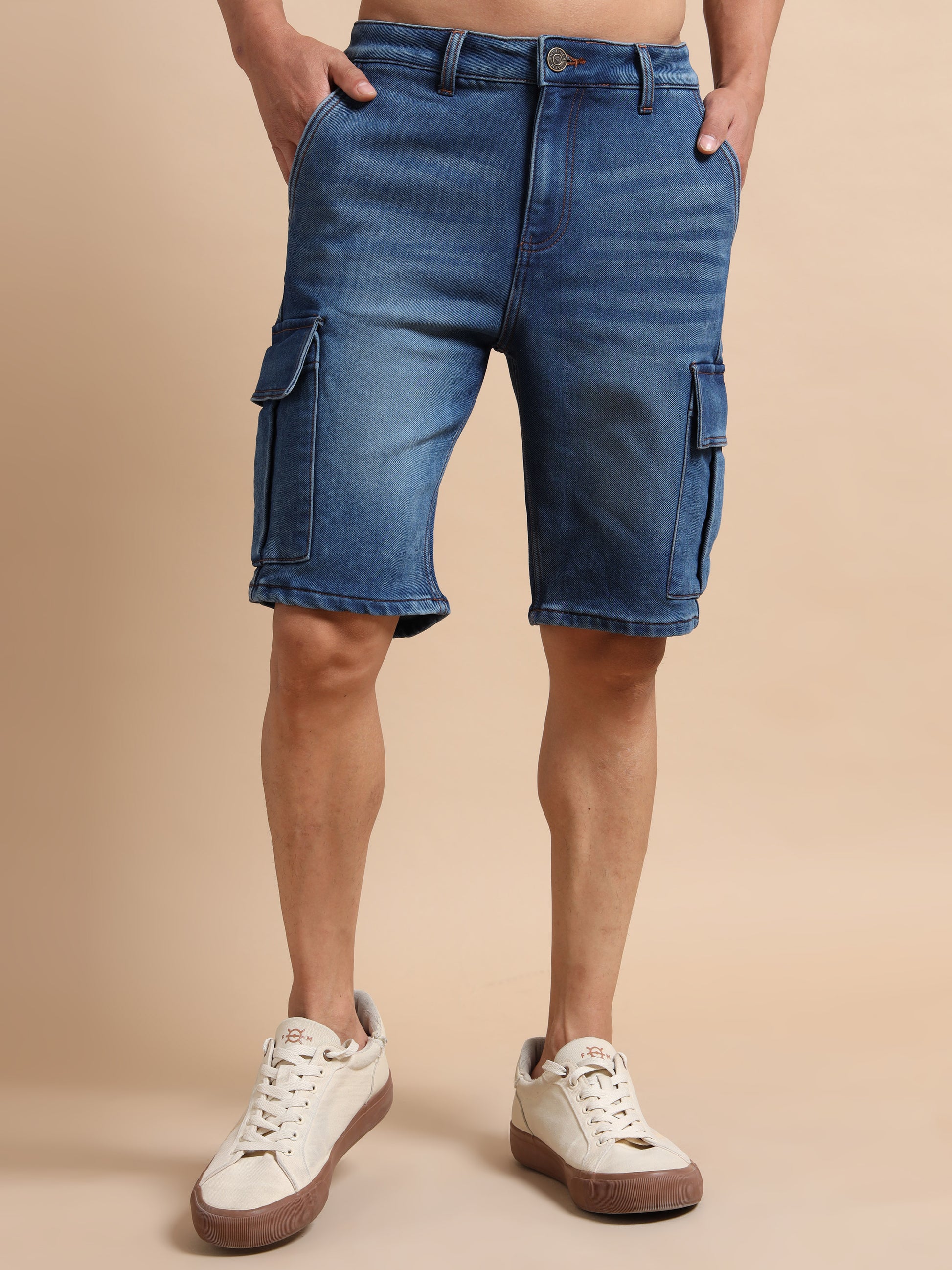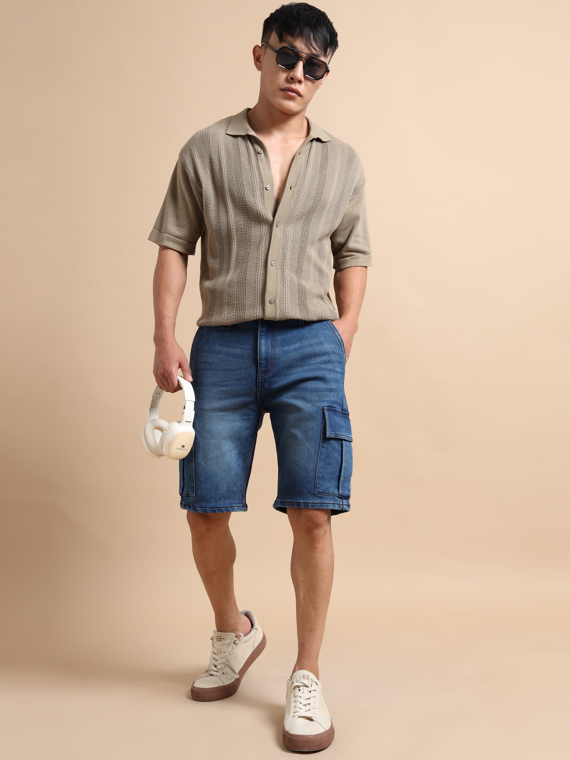 Plus Size Men's Blue Denim Shorts – Knitted Dobby Lycra Comfort Fit