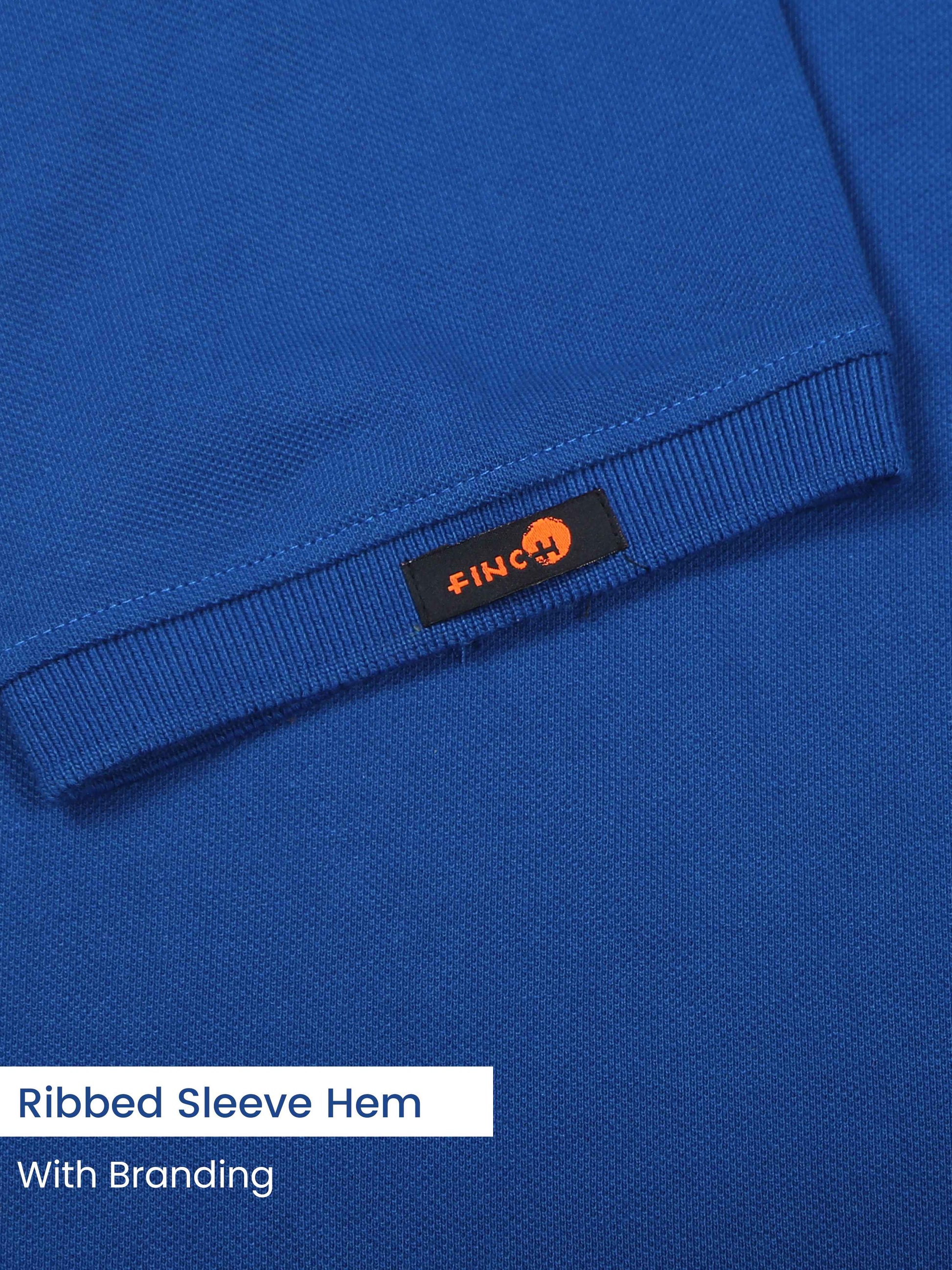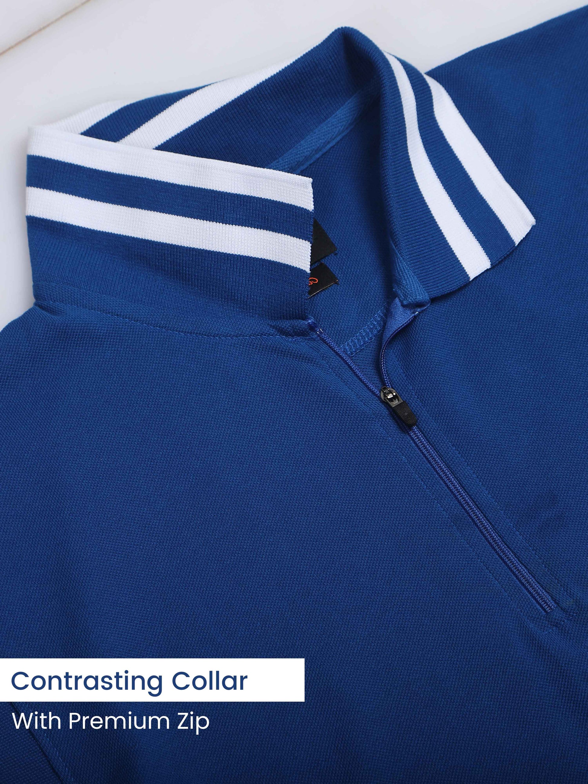 Plus Size White Striped Collar Cerulean Blue Pure Cotton Polo