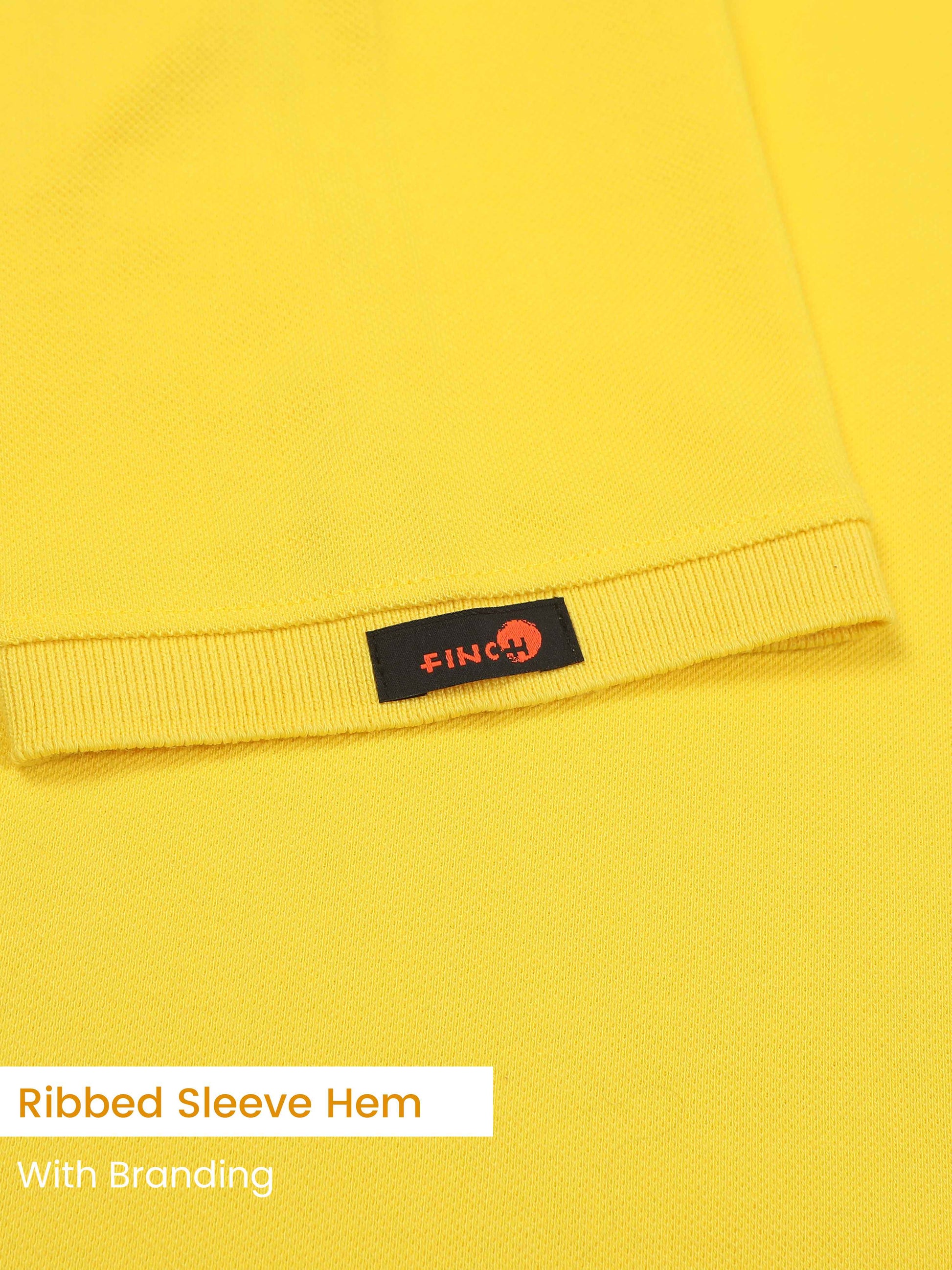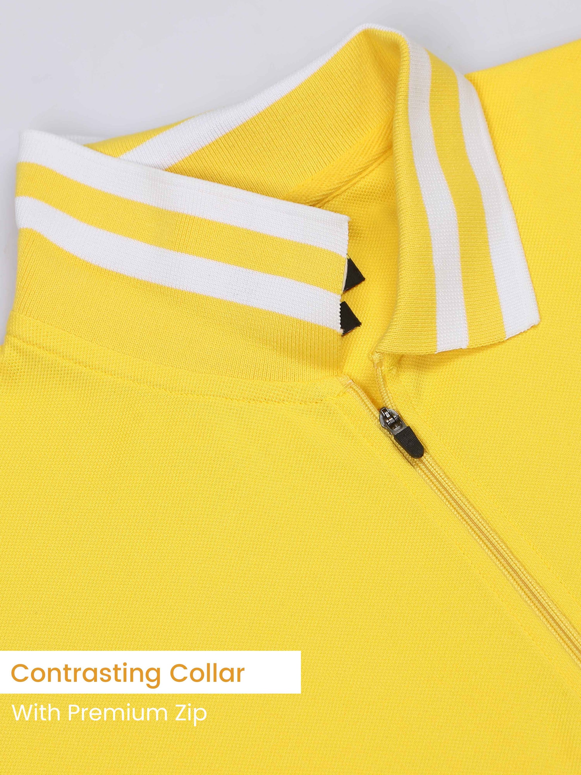 Plus Size White Striped Collar Lemon Yellow Pure Cotton Polo